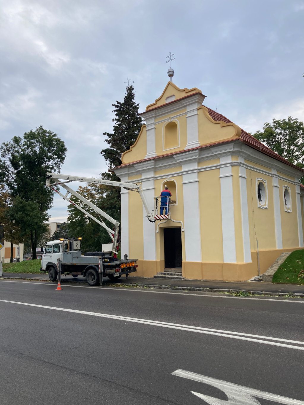 V apríli 2021 po viac mesačných administratívnych prípravách sme začali vonkajšiu obnovu kaplnky Panny Márie Karmelskej na Krušovskej ulici v Topoľčanoch. Známa je tiež pomenovaním "kaplnka na smrtke" a to z dôvodu, že dlhú dobu svojej histórie slúžila prevažne pre smútočné obrady pri rozlúčke so zosnulými. Tento svoj účel nadobudla preto, lebo okolo nej bol cintorín, ktorý siahal až po Tribečskú základú školu. Pre výstavbu nákupného účelového centra, ktoré je za kaplnkou, sa už vtedy nevyužívaný cintorín zrušil. Mnoho hrobov a náhrobných pomníkov sa buldozérmi odviezlo či časť sa nahromadila do okolia kaplnky. Odvtedy je okolo kaplnky "umelo" vytvorený kopec, pod ktorým je ešte stále veľa hrobov a pomníkov. Z úcty k týmto historickým nehnuteľnostiam boli na jar 2021 Pamiatkovým úradom SR vyhlásené obe tieto miesta, čiže kaplnka a zaniknutý cintorín za Národné kultúrne pamiatky. A v dohľadnej dobe mienime povedľa kaplnky umiestniť dvestoročný kríž z veže farského kostola spolu s jednoduchým pomníkom, ktorý by všetkým pripomínal zaniknutý cintorín.