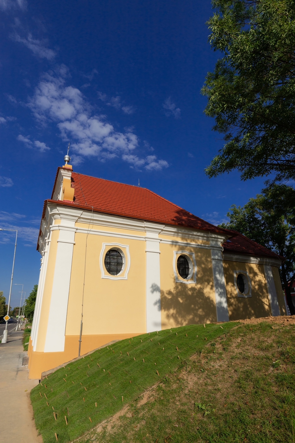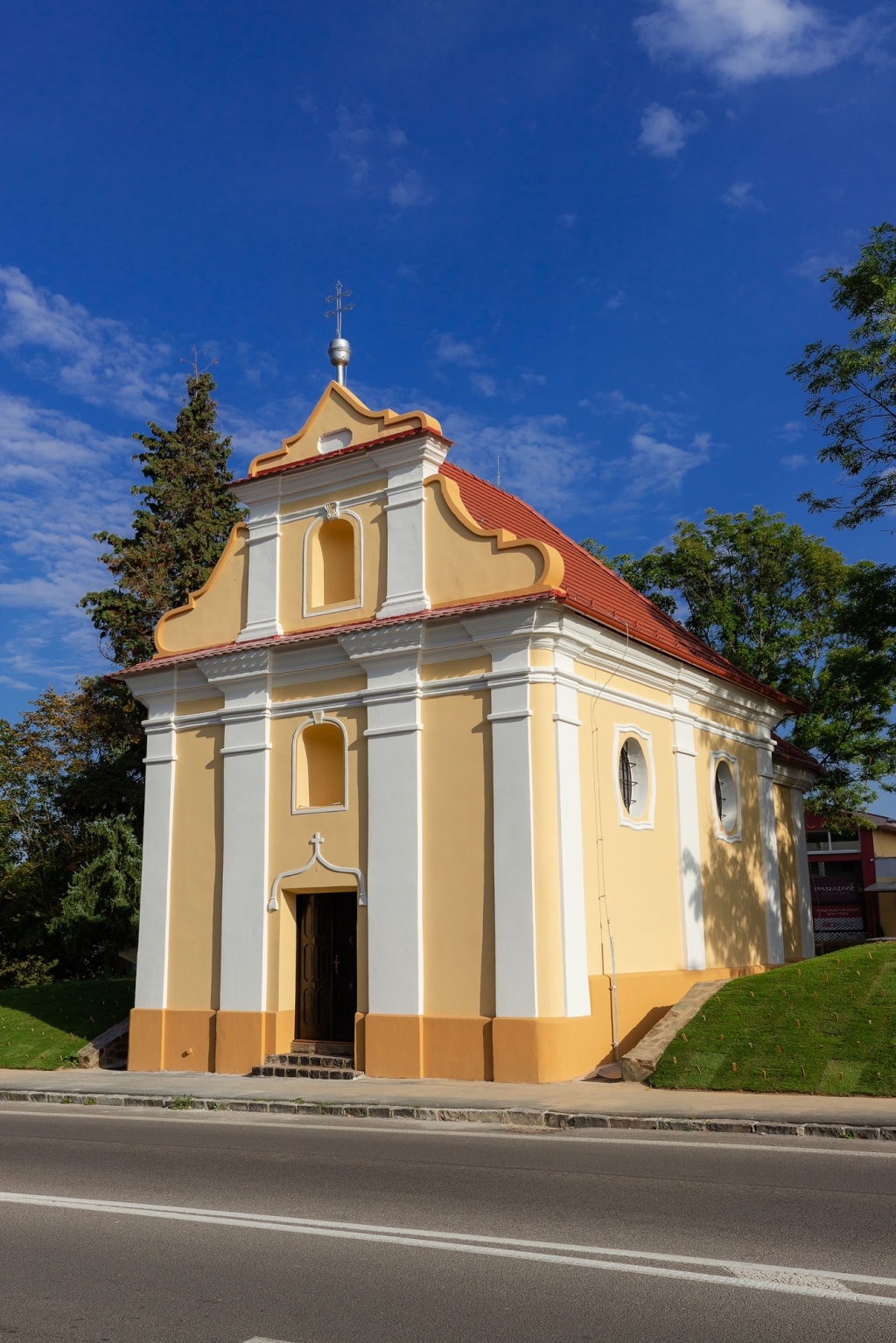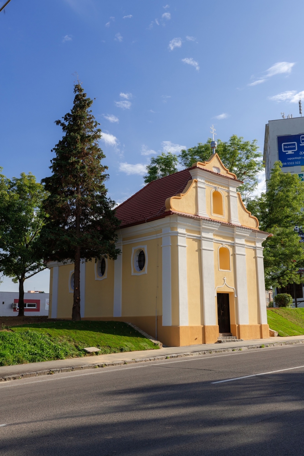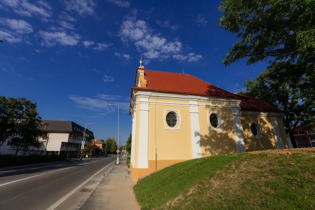 Samotná kaplnka bola postavená v barokovom slohu v roku 1750. Pod dohľadom Pamiatkového úradu sa teda v roku 2021 postupne pracovalo na jej vonkajšej obnove. Do zeme okolo kaplnky sa zaviedlo odvodnenie z rín sakrálnej nehnuteľnosti a okolo celého objektu sa postavil múr z lomového kameňa, ktorý pochádza z kameňolomu z Krnče (ďakujeme kameňolomu za sponzorské darovanie tohto kameňa). Múrom sa chcel zastabilizovať navozený kopec okolo kaplnky a posilniť tak aj statiku sakrálnej nehnuteľnosti, ktorú sa železnými tyčami musela miestami ešte spevňovať - hlavne v oblasti rotundového zadného polkruhu stavby. Následne sa pristúpilo k celkovej obnove fasády s dodržaním postupu prác a zachovania štýlu pôvodného ríms a sokla, ktorý sa na komplet celý muroval. Najhoršie časti fasády boli tie najvrchnejšie časti štítu priečelia, kde už omietka bola úplne zvetralá a odpadavala. Podľa reálneho zistenia, pri predchádzajúcej obnove sa táto najvrchnejšia časť vôbec neobnovovala. Na vynovenú fasádu sa následne použila veľmi kvalitná fasádna farba dodaná z Brna (Česká republika), ktorá sa používa na významné historické budovy, a ktorú sme inak používali tiež pre obnove dolnej časti fasády farského kostola (v roku 2018).