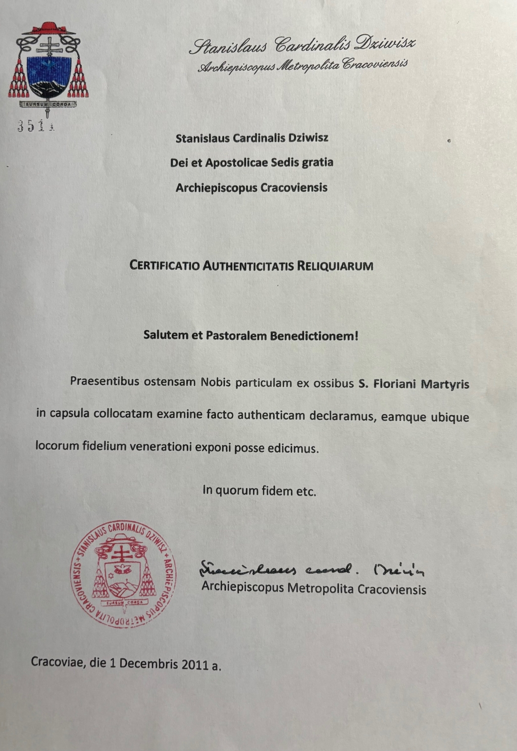 Večerná sv. omša 4. júla 2024 na záver Dňa farskej poklony o 18:30 hod. bola obetovaná za našu farnosť a všetkých jej farníkov. Výnimočná bola aj z toho dôvodu, že na jej začiatku boli do farského kostola prinesené relikvie sv. Floriána, ktorý je patrónom mesta Topoľčany. Tieto relikvie sme osobne išli prevziať 20. júna 2024 do Krakova (Poľsko). A darovala nám ich Farnosť v samotnej Bazilike sv. Floriána v Krakove, kde tento svätec sa teší veľkej úcte. Veď je aj spolupatrónom Poľska. Pravosť relikvií potvrdil kardinál Stanislav Dziwisz svojim dekrétom, ktorý bol niekdajší osobný tajomník pápeža Jána Pavla II. Mimo iného práve v tejto farnosti Karol Wojtyla pastoračne pôsobil ako kaplán (farský vikár), ktorého však poznáme najmä pod menom pápež sv. Ján Pavol II. Relikvie sv. Floriána boli u nás umiestnené v presbytériu nášho farského kostola a to v presbytériu povedľa majestátnej sochy tohto svätca sv. Floriána. Budú na danom mieste umiestnené nepretržite k verejnej úcte, aby sv. Florián orodoval za našej mesTO.
