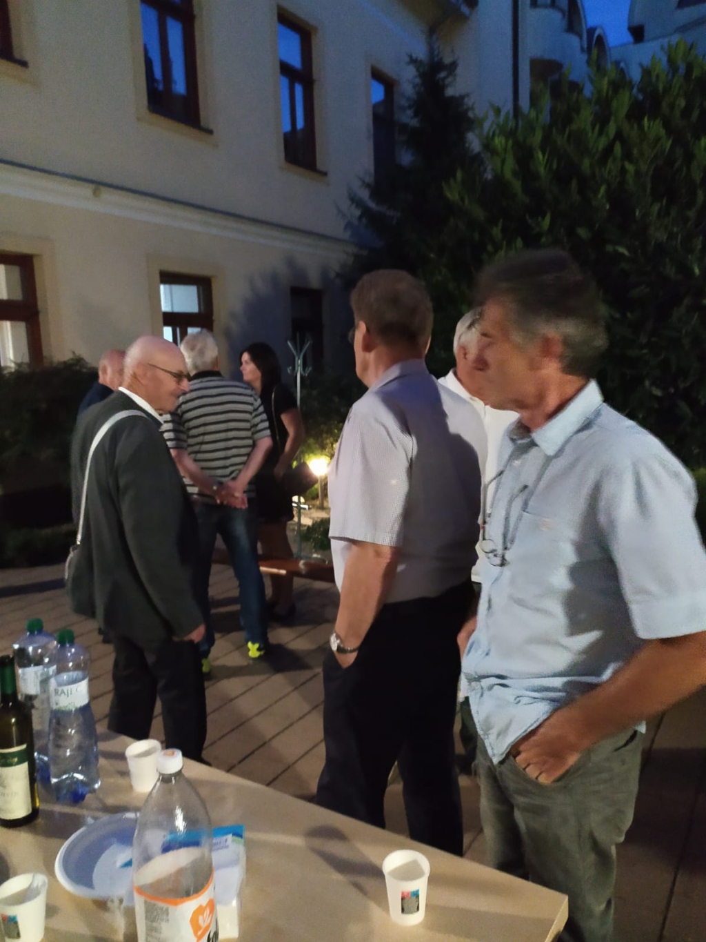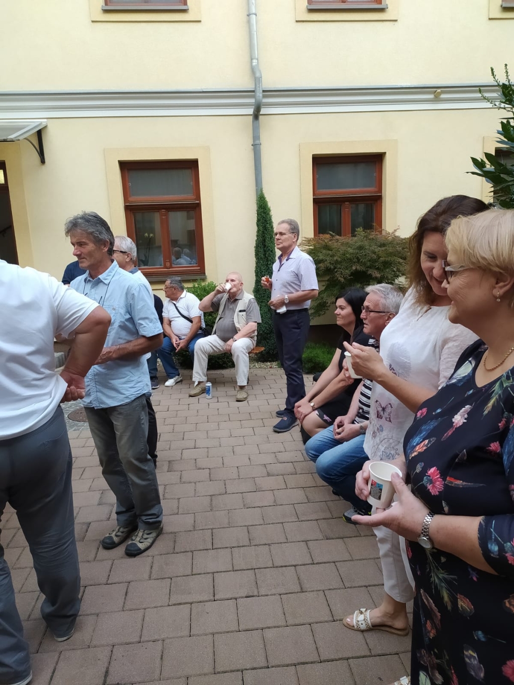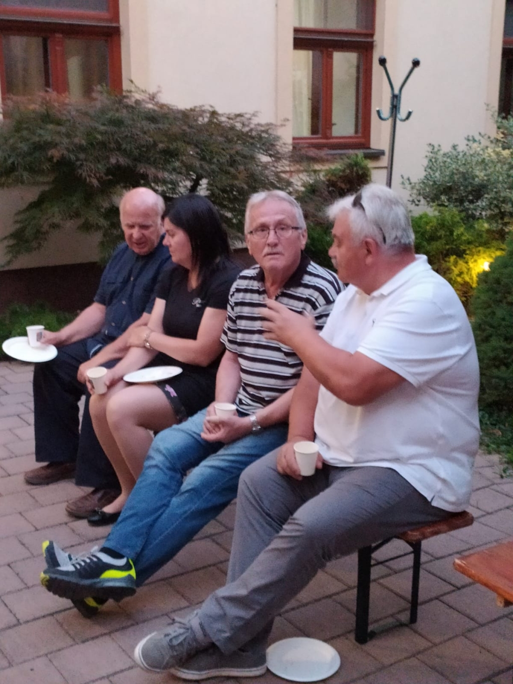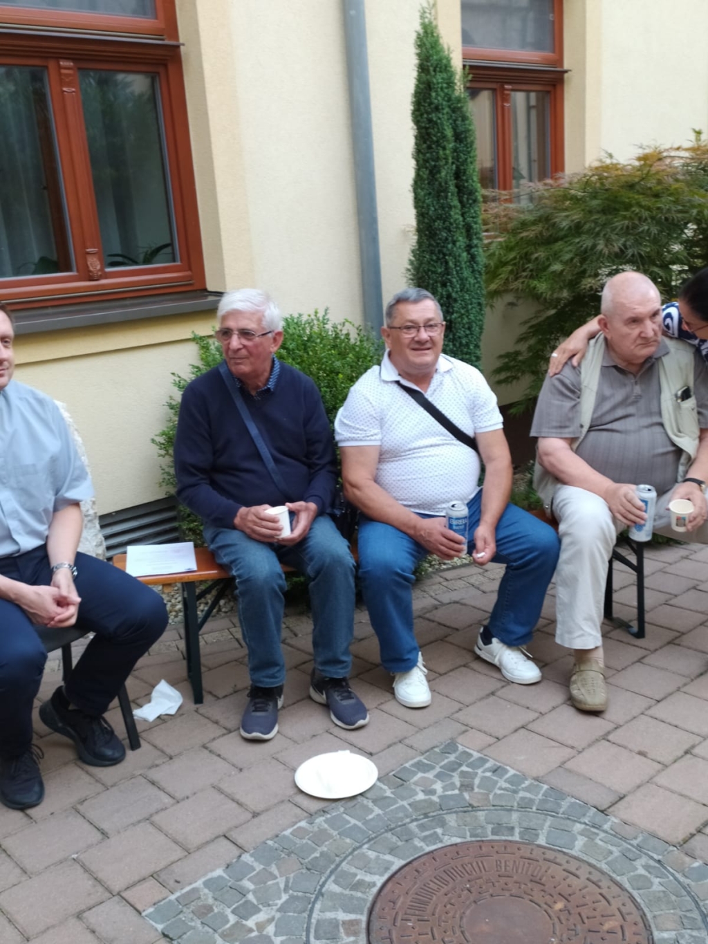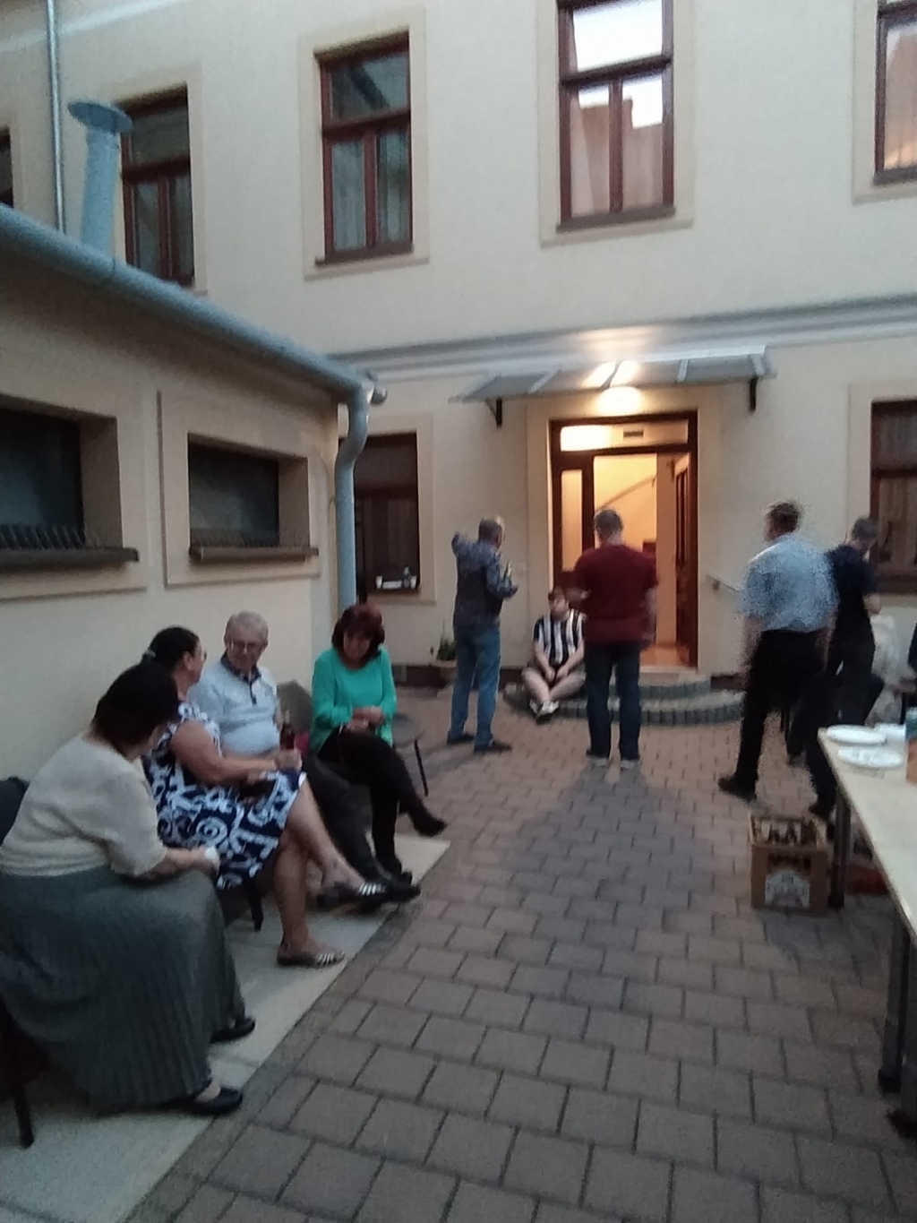 Po skončení večernej bohoslužby nasledovalo v daný deň ešte vo vnútornom farskom nádvorí príjemné stretnutie so spevákmi a hudobníkmi nášho chrámového spevokolu. Bola to jedinečná príležitosť všetkým členom zboru na čele s našim regenschorim vyjadriť vrelé poďakovanie za ich spevy počas našich slávností, kedy umocňujú vznešenosť a krásu liturgie. Zároveň im bol predstavený náš nový farský vikár - kaplán dp. Július Nemček.