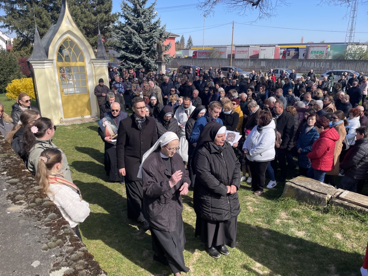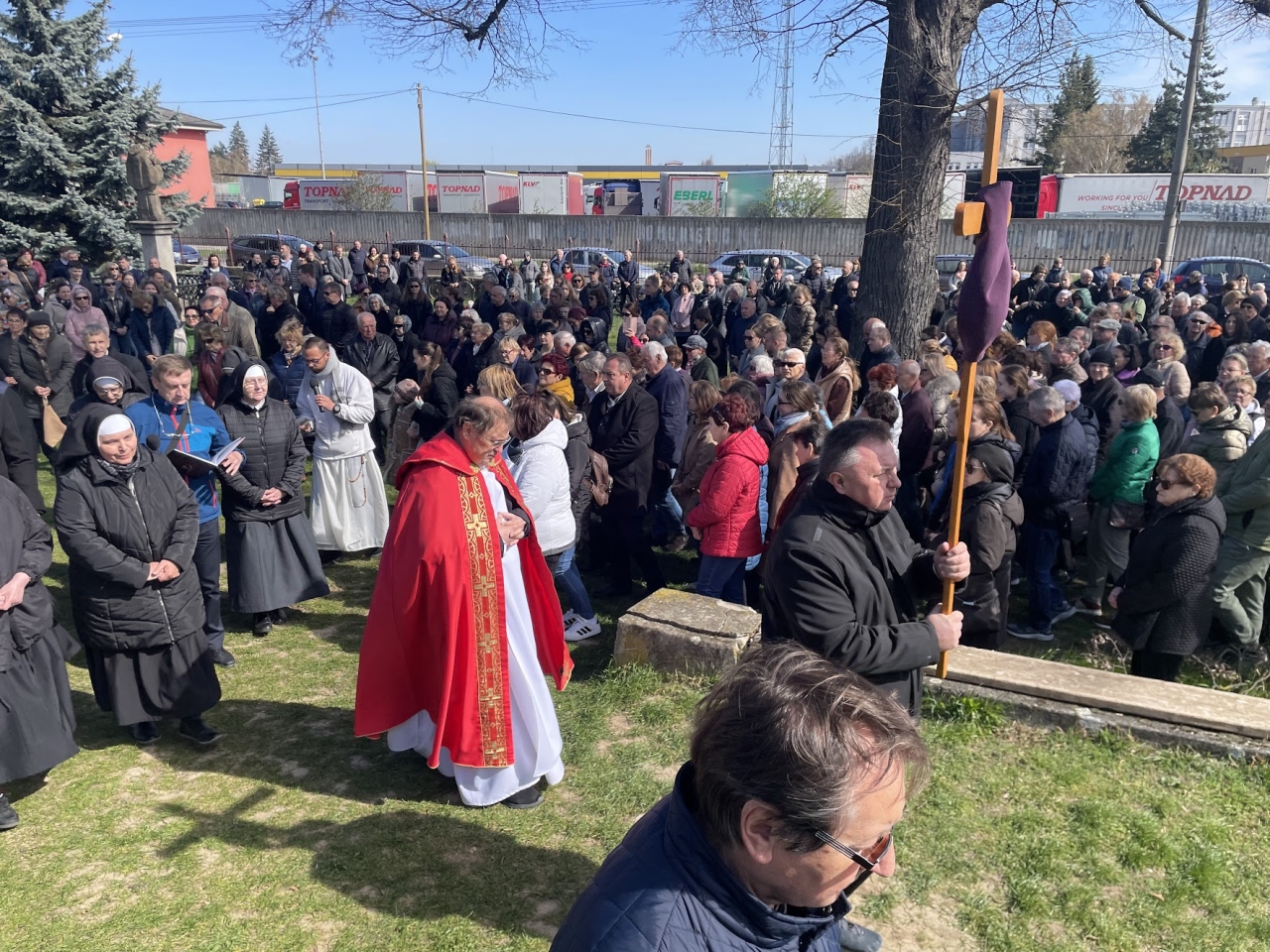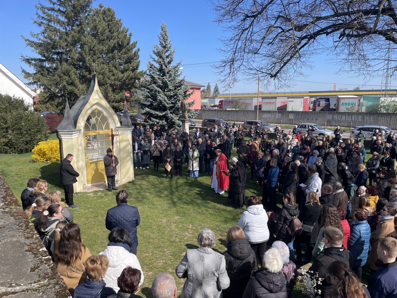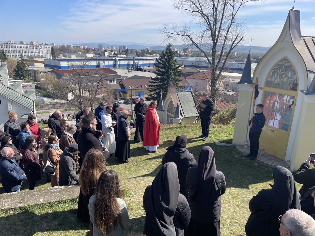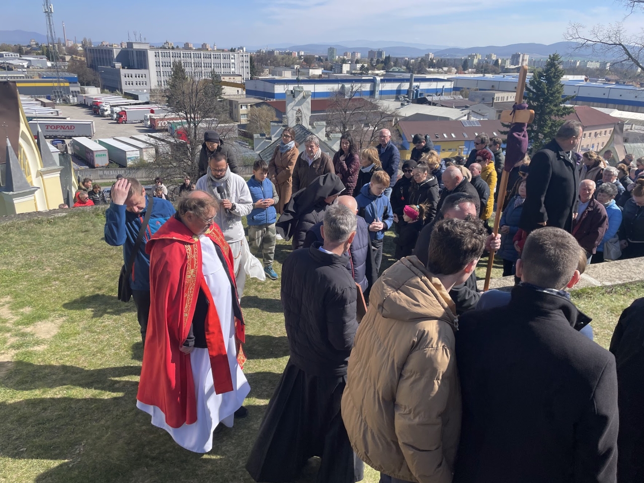Takto veriaci obidvoch topoľčianskych farností i s nábožnými pútnikmi z okolia, sa tam zhromaždili aj v tohtoročný Veľký piatok 3. apríla 2026 na pobožnosti krížovej cesty pre posilnenie viery, nádeje a kresťanskej lásky. Príjemné jarné počasie pritiahlo na pobožnosť veľmi veľa ľudí (viď foto). Ale čo ich ešte väčšmi pritiahlo na toto krásne a nábožné miesto našej topoľčianskej Kalvárie, bola ich kresťanská viera a osobná láska k ukrižovaného a vzkriesenému Ježišovi Kristovi. Naša pobožnosť krížovej cesty bola tak viditeľným vyznaním našej hlbokej viery a úprimnej lásky k nášmu Majstrovi, Učiteľovi a Pánovi. Bolo to takisto naše osobné i spoločné vďakyvzdanie za Kristovu vykupiteľskú obetu na kríži. Ako taktiež za to, že nám dal svoju Matku Máriu na našu nebeskú Matku. Nech Ježiš Kristus je za to od nás ľudí navždy chválený a zvelebený. Preto sme sa spoločne modlili a vzývali: