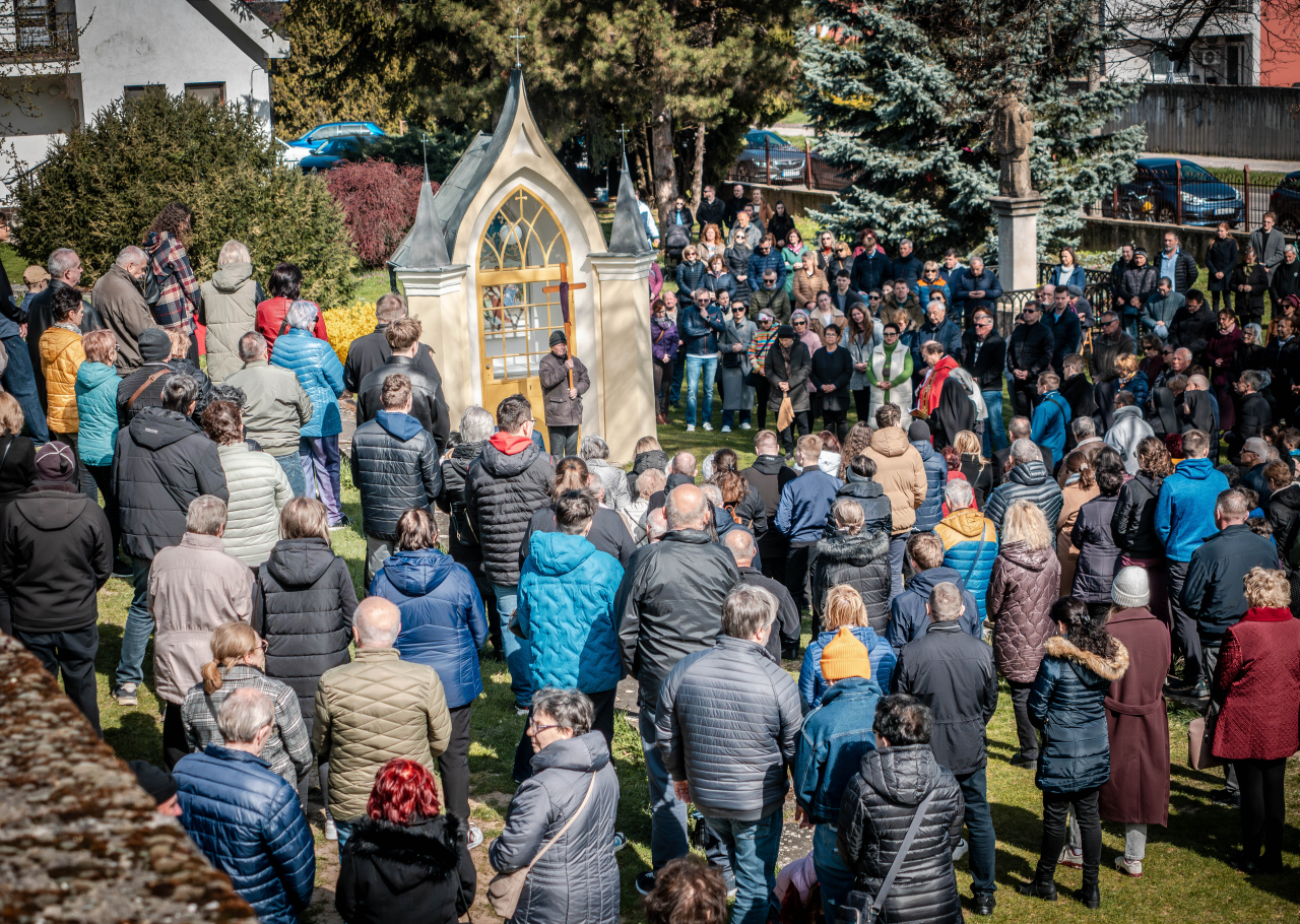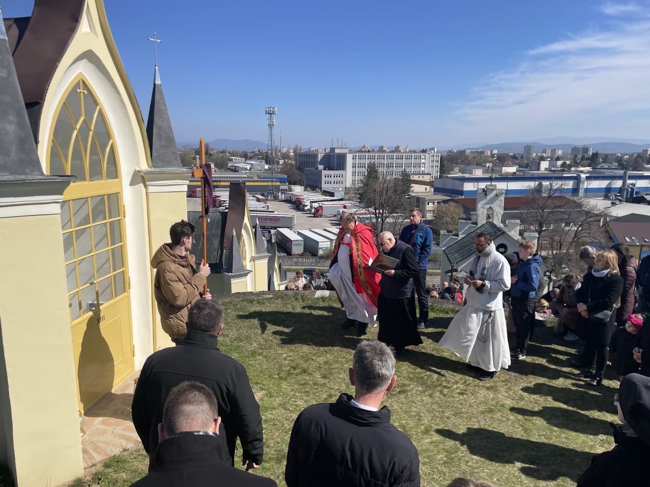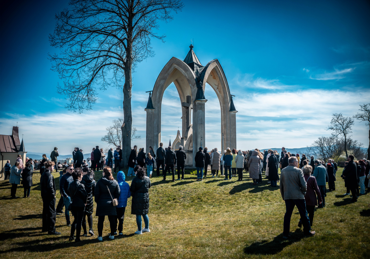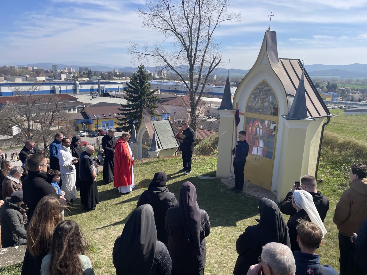 Takto veriaci obidvoch topoľčianskych farností i s nábožnými pútnikmi z okolia, sa tam zhromaždili aj v tohtoročný Veľký piatok 3. apríla 2026 na pobožnosti krížovej cesty pre posilnenie viery, nádeje a kresťanskej lásky. Príjemné jarné počasie pritiahlo na pobožnosť veľmi veľa ľudí (viď foto). Ale čo ich ešte väčšmi pritiahlo na toto krásne a nábožné miesto našej topoľčianskej Kalvárie, bola ich kresťanská viera a osobná láska k ukrižovaného a vzkriesenému Ježišovi Kristovi. Naša pobožnosť krížovej cesty bola tak viditeľným vyznaním našej hlbokej viery a úprimnej lásky k nášmu Majstrovi, Učiteľovi a Pánovi. Bolo to takisto naše osobné i spoločné vďakyvzdanie za Kristovu vykupiteľskú obetu na kríži. Ako taktiež za to, že nám dal svoju Matku Máriu na našu nebeskú Matku. Nech Ježiš Kristus je za to od nás ľudí navždy chválený a zvelebený. Preto sme sa spoločne modlili a vzývali: