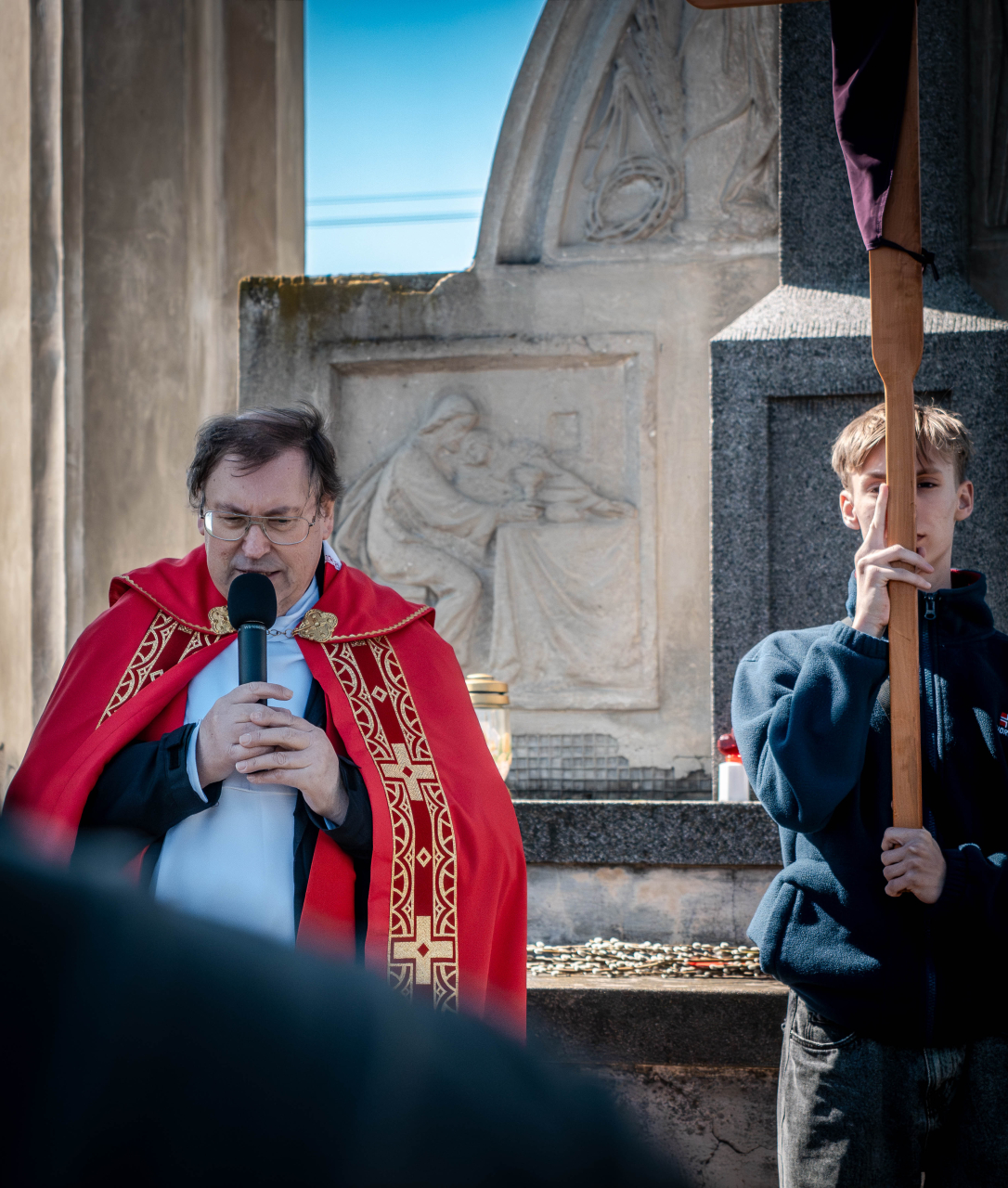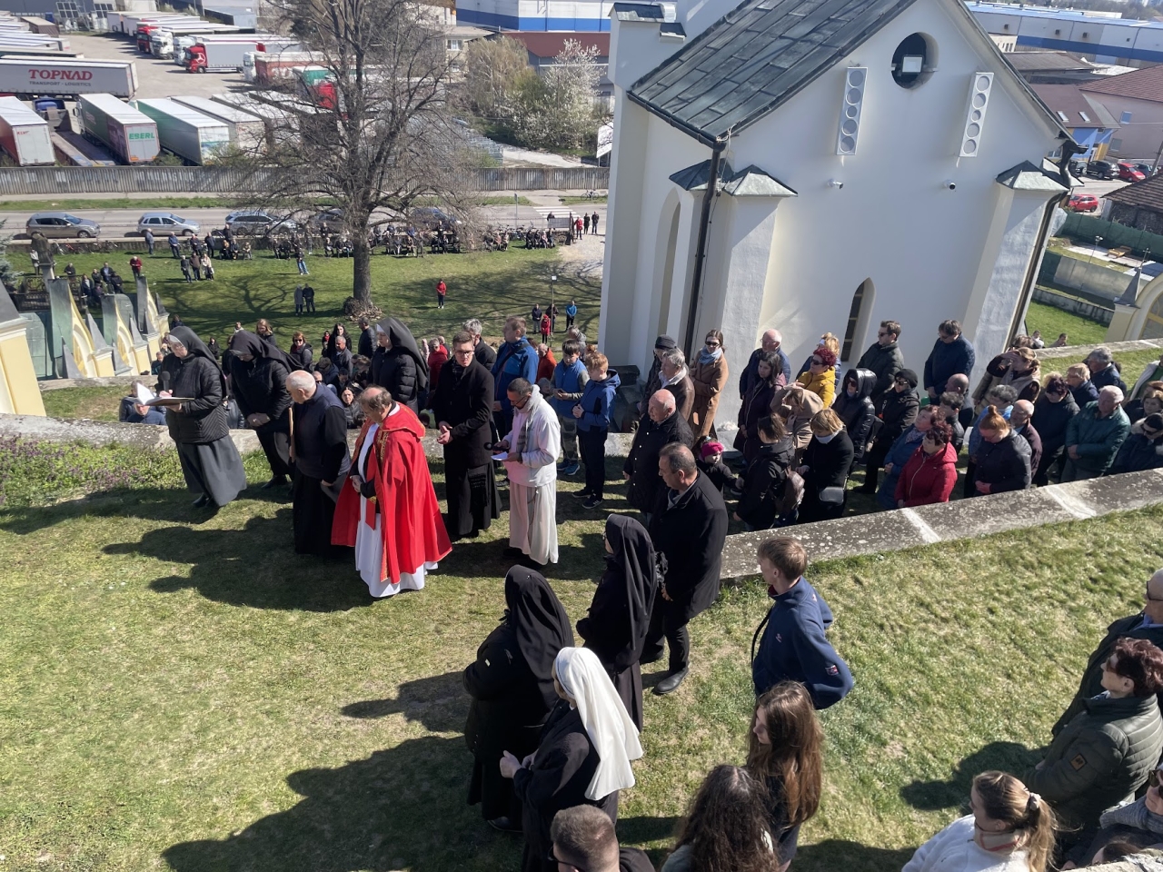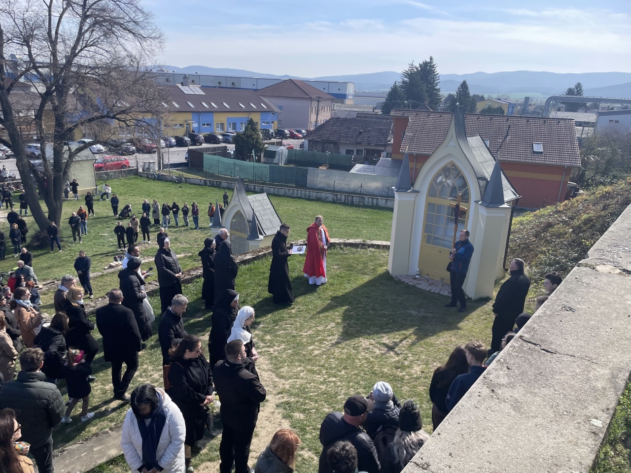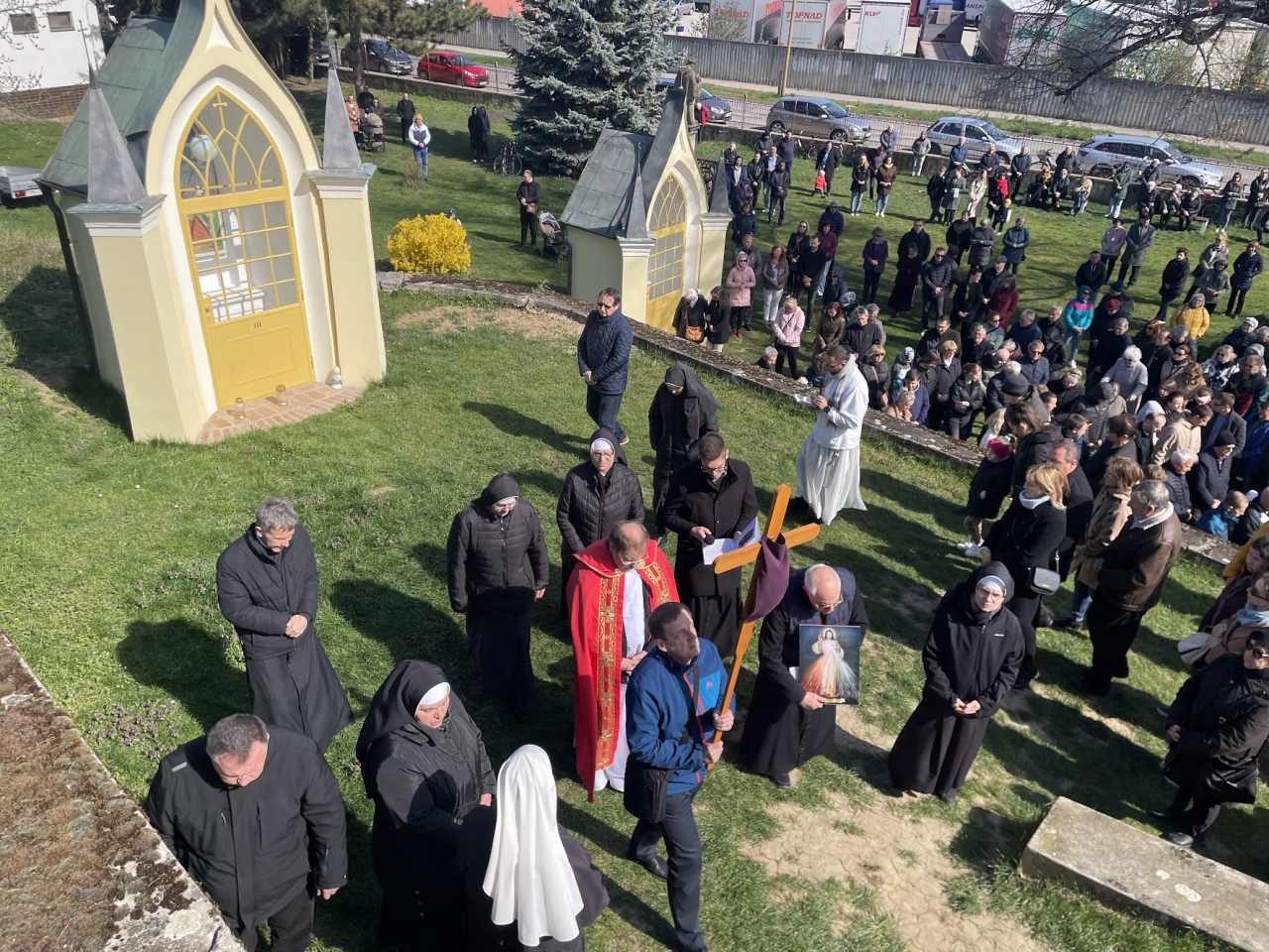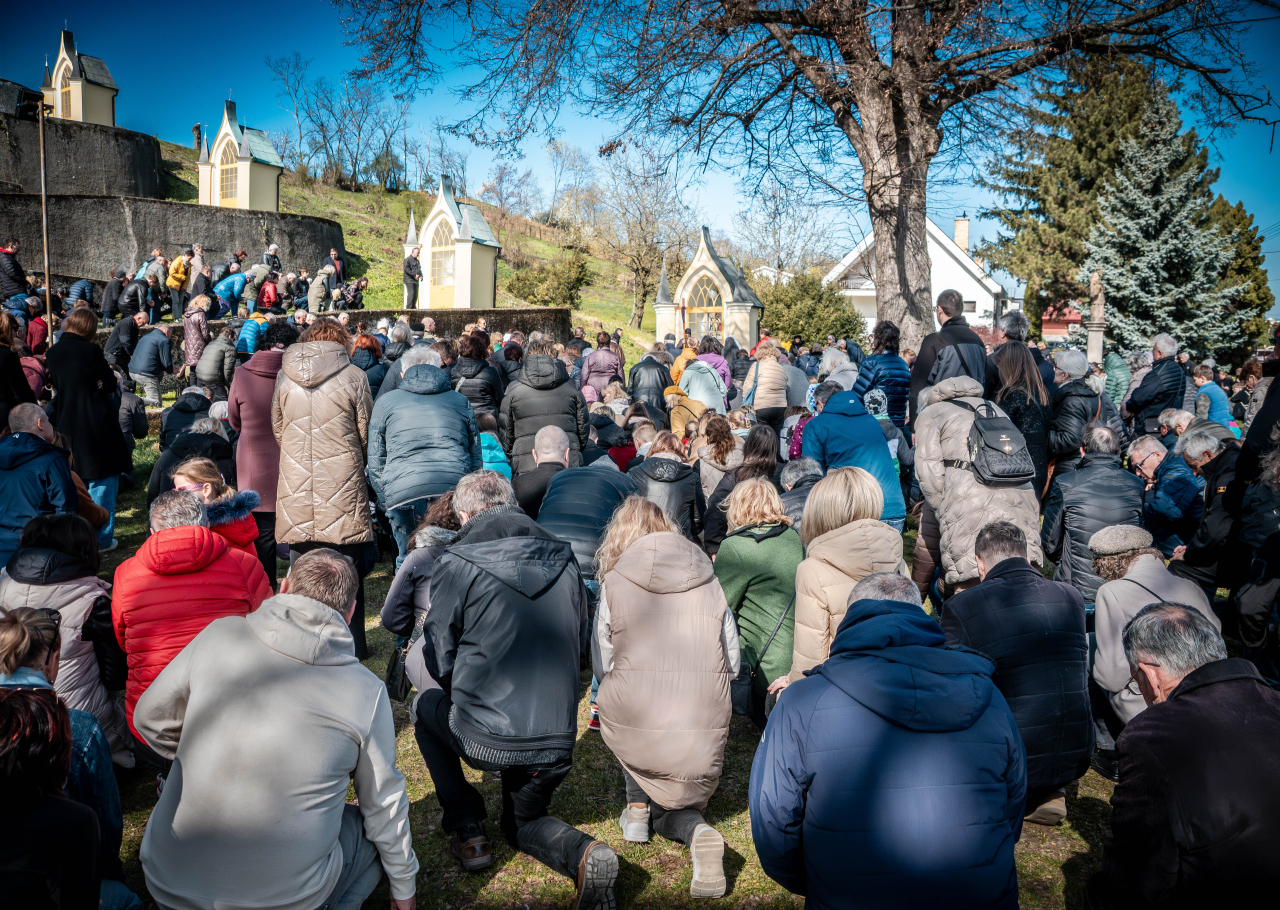 Takto veriaci obidvoch topoľčianskych farností i s nábožnými pútnikmi z okolia, sa tam zhromaždili aj v tohtoročný Veľký piatok 3. apríla 2026 na pobožnosti krížovej cesty pre posilnenie viery, nádeje a kresťanskej lásky. Príjemné jarné počasie pritiahlo na pobožnosť veľmi veľa ľudí (viď foto). Ale čo ich ešte väčšmi pritiahlo na toto krásne a nábožné miesto našej topoľčianskej Kalvárie, bola ich kresťanská viera a osobná láska k ukrižovaného a vzkriesenému Ježišovi Kristovi. Naša pobožnosť krížovej cesty bola tak viditeľným vyznaním našej hlbokej viery a úprimnej lásky k nášmu Majstrovi, Učiteľovi a Pánovi. Bolo to takisto naše osobné i spoločné vďakyvzdanie za Kristovu vykupiteľskú obetu na kríži. Ako taktiež za to, že nám dal svoju Matku Máriu na našu nebeskú Matku. Nech Ježiš Kristus je za to od nás ľudí navždy chválený a zvelebený. Preto sme sa spoločne modlili a vzývali: