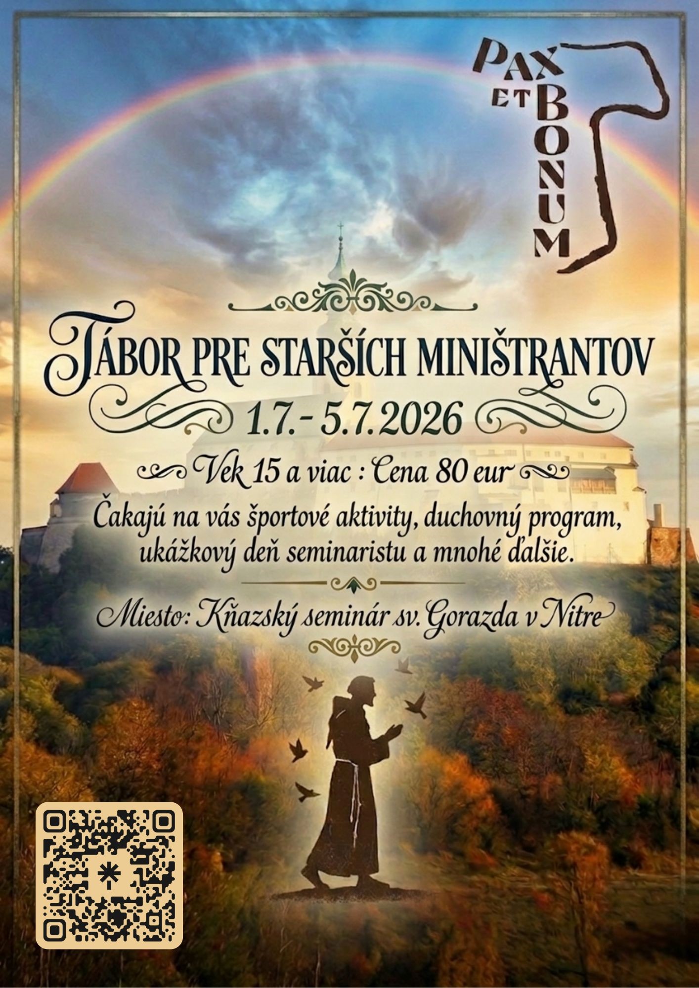 Kňazský seminár sv. Gorazda v Nitre pozýva miništrantov rôznych vekových kategórií na letné miništrantské tábory, ktoré budú prebiehať v priestoroch seminára. Tohtoročnou témou je život sv. Františka z Assisi.